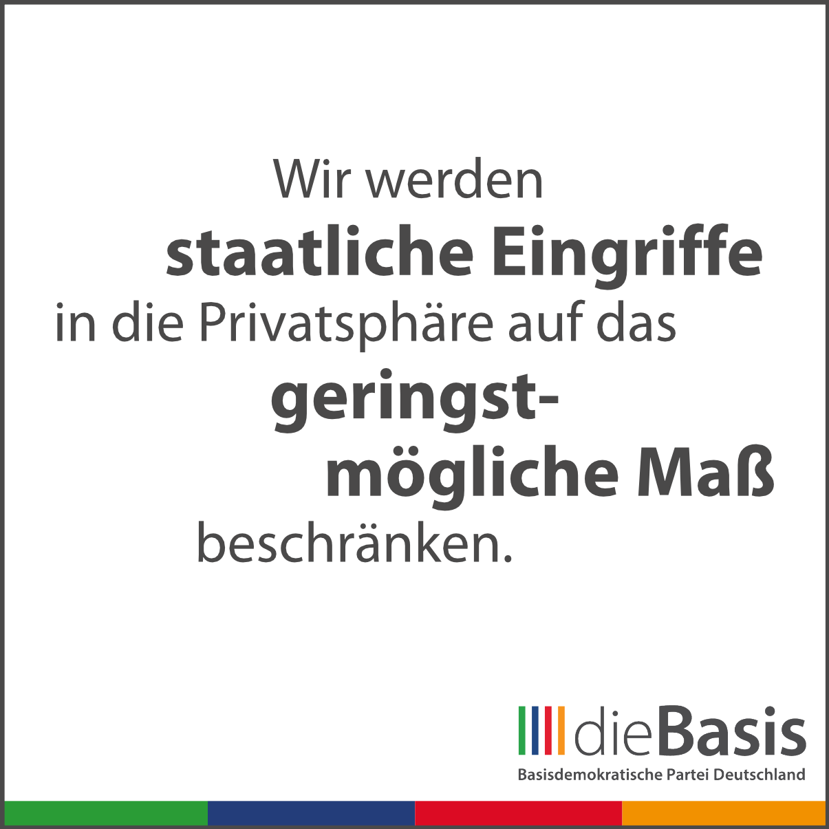 dieBasis – Forderungen – Wir werden staatliche Eingriffe in die Privatsphäre auf das geringstmögliche Maß beschränken.